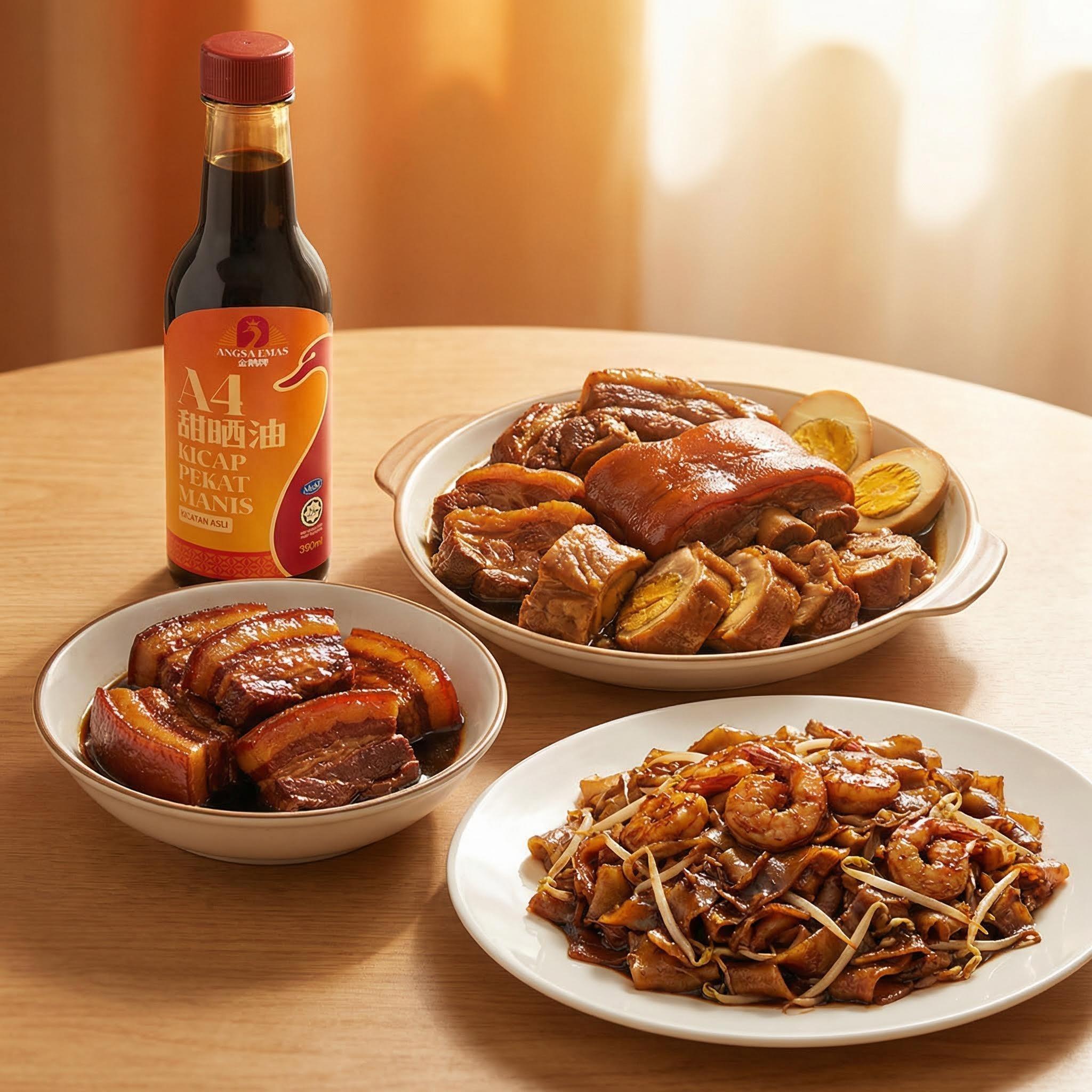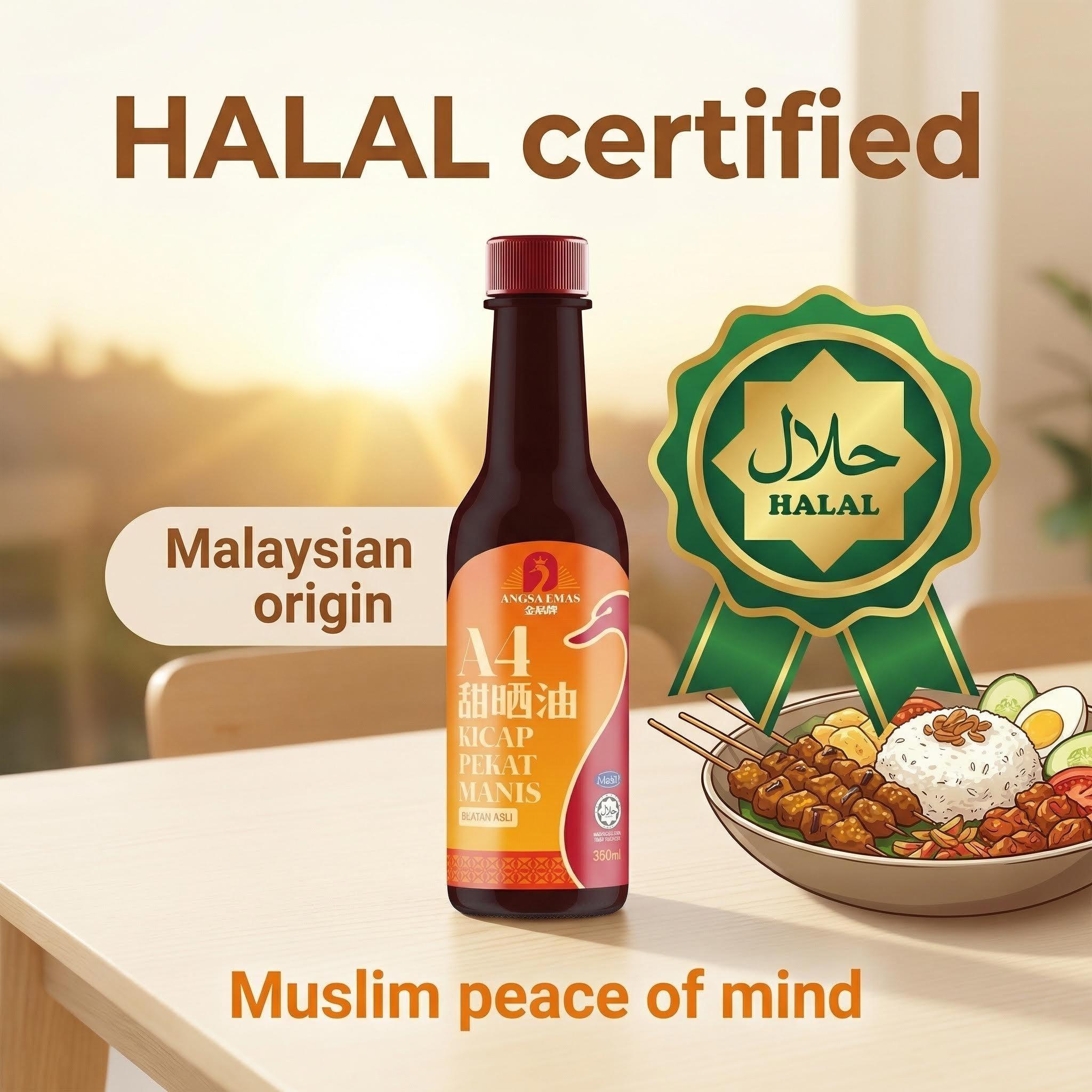 ANGSA EMAS自家酿造基底,坚持使用非转基因大豆,180天发酵,提供醇厚的咸鲜底味与自然酱香,是整瓶甜晒油风味层次的根基。